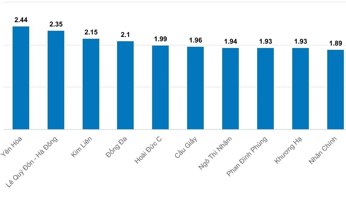 Theo sau là Kim Liên, Đống Đa – đều trên 1/2, rồi đến Cầu Giấy, Ngô Thì Nhậm, Phan Đình Phùng, Khương Hạ và Nhân Chính.