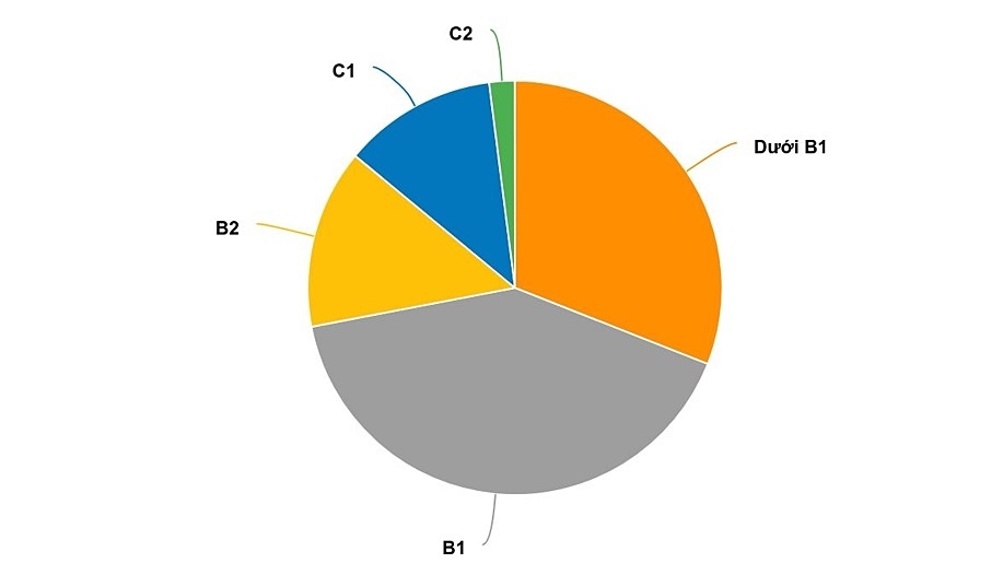 Dữ liệu ở nhóm đáng tin cậy cho thấy 41% giáo viên có trình độ tiếng Anh ở mức B1, 31% dưới mức này. Tỷ lệ thầy cô có trình độ từ B2 (bậc 4/6) trở lên là 28%.