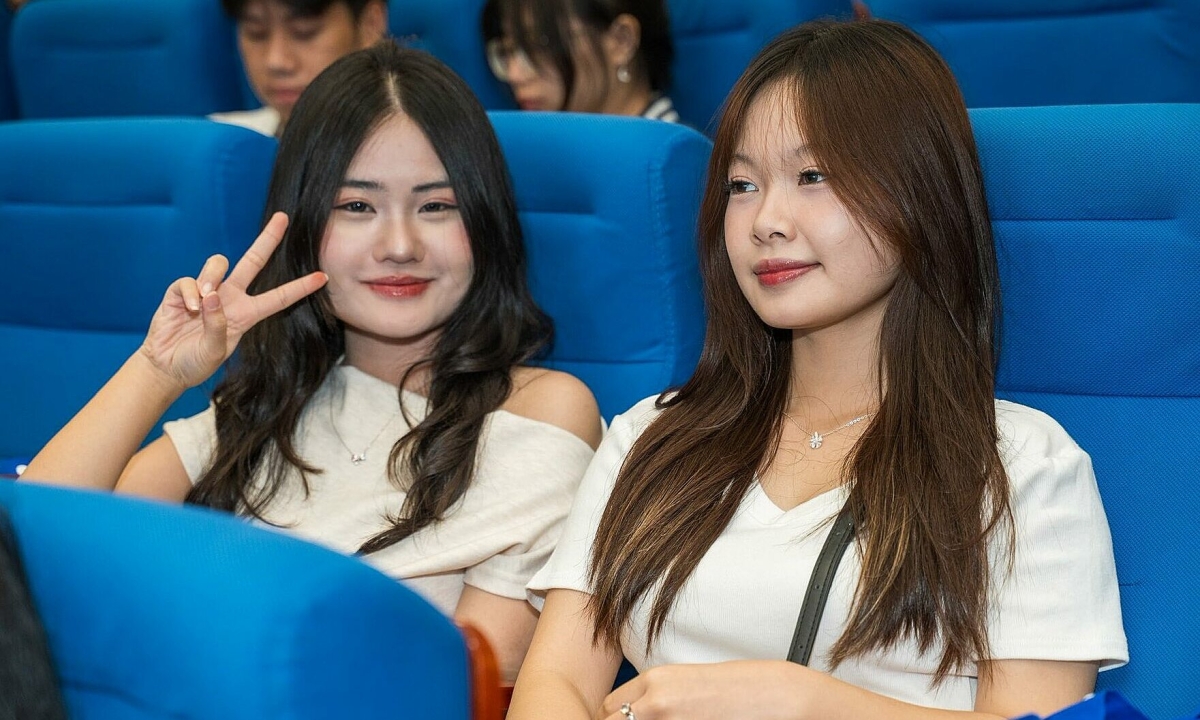 Học sinh dự buổi tư vấn tuyển sinh tại Đại học Kinh tế Quốc dân hôm 25/5. Ảnh: NEU