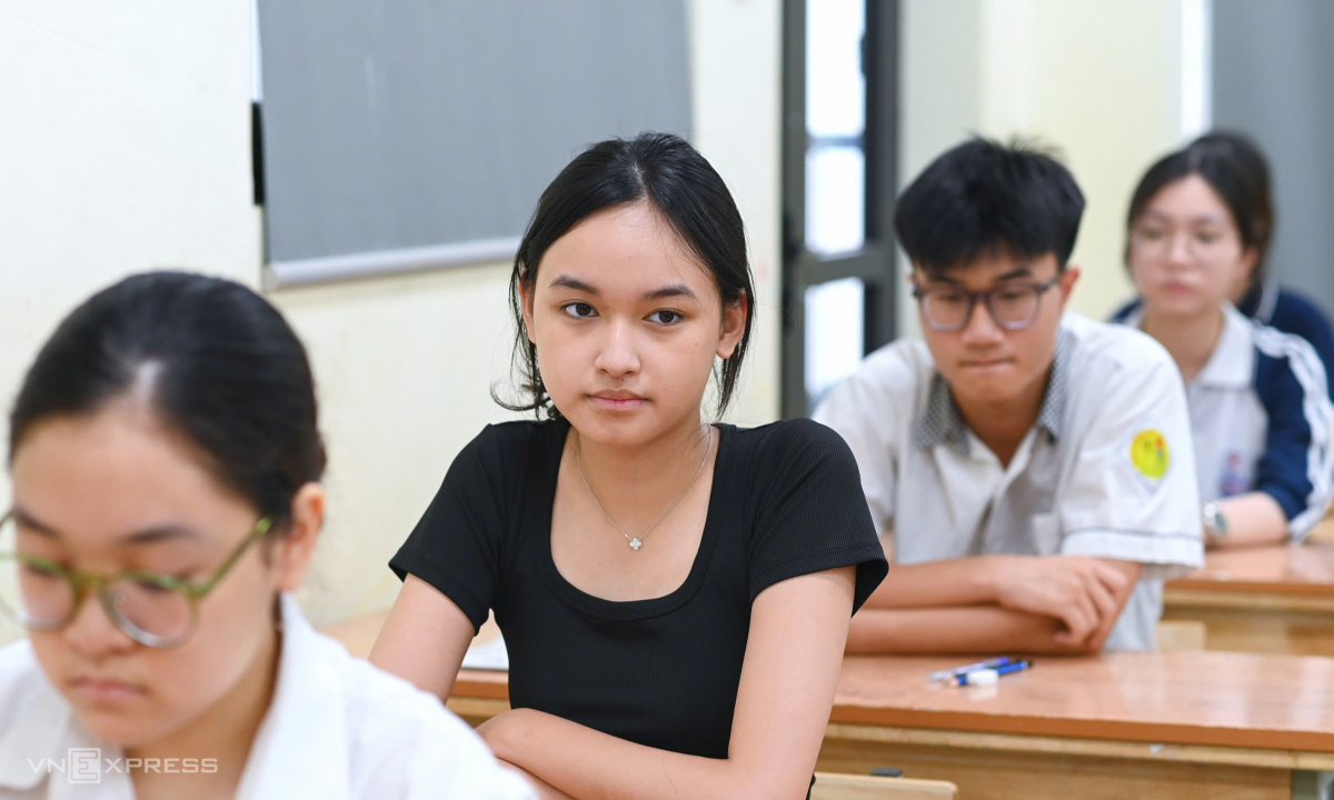 Thí sinh trước giờ làm bài thi tốt nghiệp, tại trường THPT Nguyễn Trường Tộ, quận Đống Đa, Hà Nội, sáng 27/6. Ảnh: Giang Huy