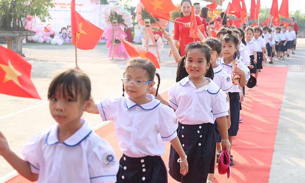 Học sinh trường Tiểu học Đại Thịnh A, Xã Đại Thịnh, huyện Mê Linh, Hà Nội trong ngày khai giảng năm học mới 2024-2025. Ảnh: Phạm Hùng