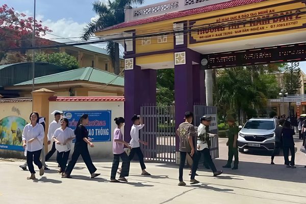 Khoảng 9h, nhiều học sinh có mặt tại điểm thi trường THPT Trưng Vương, quận 1, để chuẩn bị làm thủ tục dự thi lớp 10. Bên ngoài cổng, phụ huynh dõi theo con. Năm nay, TP HCM có hơn 76.400 học sinh đăng ký thi lớp 10, các trường công có thể đáp ứng…