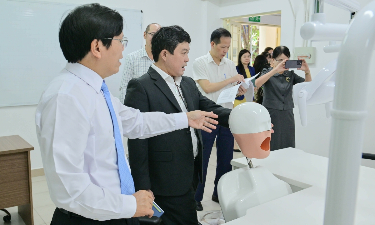 Đoàn đánh giá của Bộ Y tế khảo sát công tác chuẩn bị đào tạo khối ngành sức khỏe của trường Đại học Gia Định. Ảnh: Như Ý