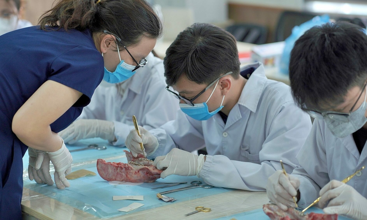 Sinh viên khoa Răng Hàm Mặt, trường Đại học Y Dược trong một workshop về phẫu thuật trong miệng hồi tháng 5. Ảnh: Fanpage LCĐ khoa Răng Hàm Mặt