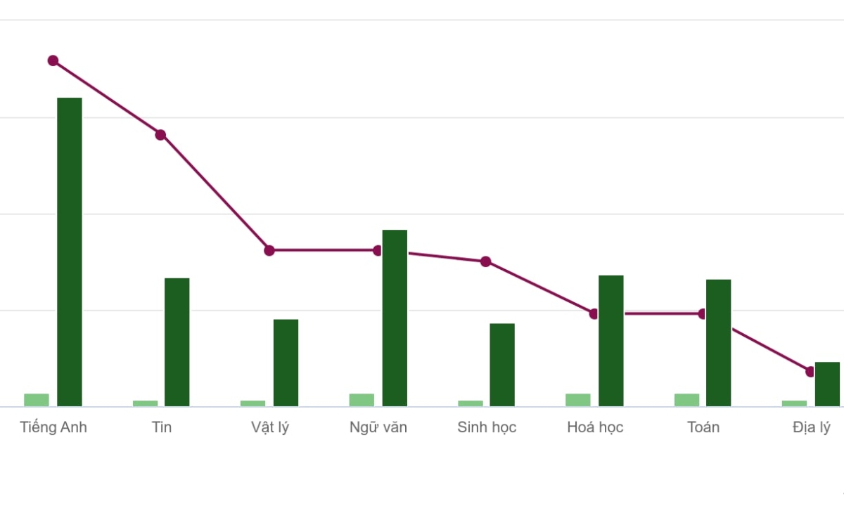 Một là nhóm thi chuyên Tin học, Vật lý, Hóa học, Sinh học và Địa lý, điểm xét tuyển là tổng môn Toán chung cộng môn chuyên nhân hệ số hai. Điểm Văn và Tiếng Anh chung chỉ là điều kiện.