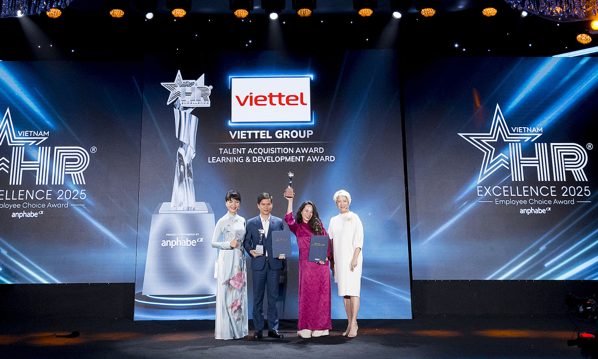 Viettel được vinh danh ở hạng mục “Thu hút nhân tài” và “Đào tạo & Phát triển nhân viên” nhờ nỗ lực xây dựng môi trường và phát triển nhân tài toàn diện tại HR Excellence Awards.